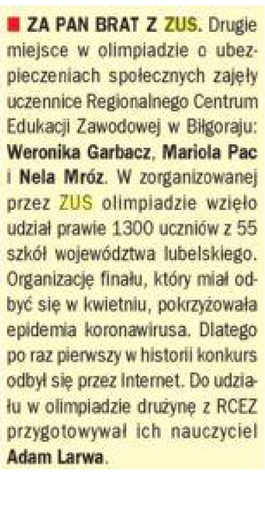 - „Lekcje z ZUS” - w tym roku zdalne. Bilgoraj.com.pl 12.11.2020 r. (link do strony zewnętrznej)