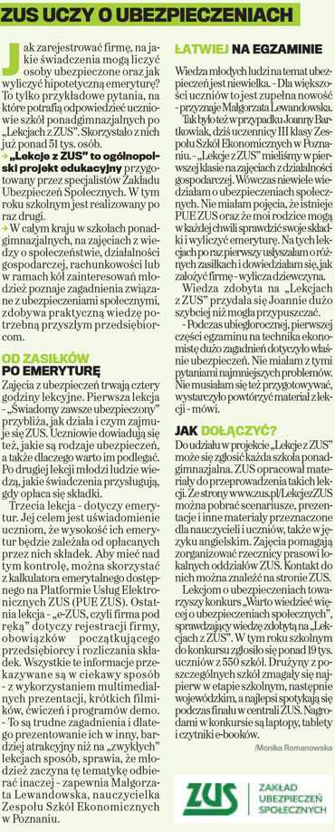 ZUS edukuje młodzież - Gazeta Polska Codziennie 31.01.2017 r.