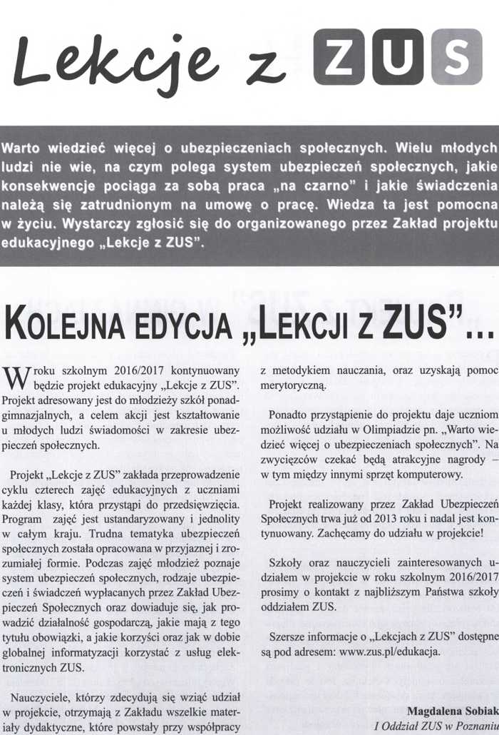 - "Lekcje z ZUS" trafią do podstawy programowej? - wirtualnemedia.pl 27.04.2016 r. (link do strony zewnętrznej)