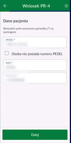 to w aplikacji mobilnej wybierasz Wystaw wniosek PR-4